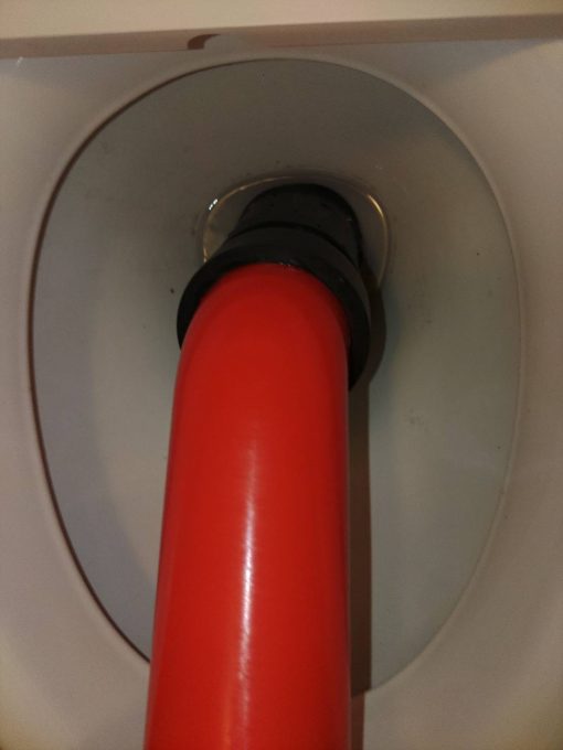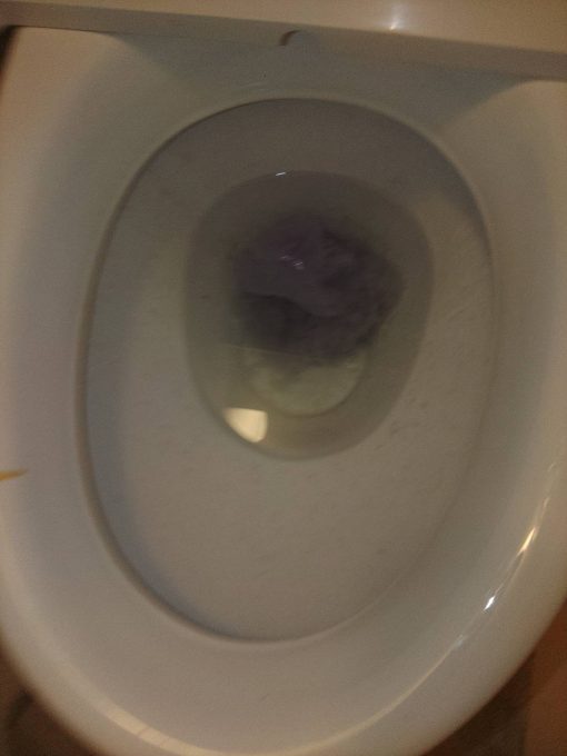 お客様に作業方法を確認し、ローポンプの圧力でトイレットペーパーを排水管に押し出し詰まり解消しました。