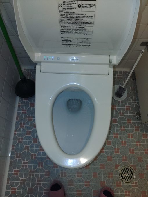 全体的に新品に交換してとの希望でしたので、既存のトイレを取り外しフランジ金具も錆び付いていたので新しいのに交換し、TOTOのピュアレストQRトイレTCF6543ウォシュレットを取り付けました。
