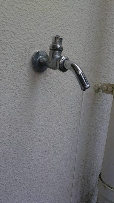 屋外にある散水蛇口をしめても水が止まらず常に出ている状態でした。