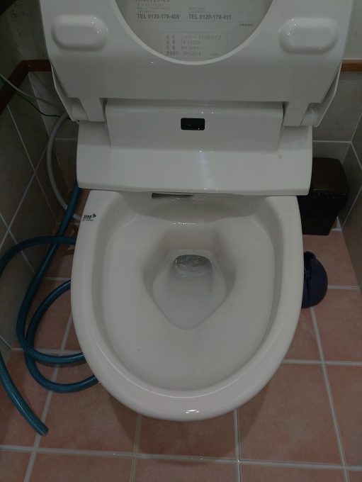 トイレットペーパーであればローポンプを使用し押し流しますが、芳香剤だと引っ掛かかり流れたとしても排水管で詰まり二次災害を引き起こす可能性がある為、確実に取り除ける方法で便器を脱着させて頂きました。