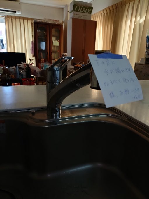 沖縄県豊見城市宜保に台所蛇口水漏れ修理依頼でお伺いしました。