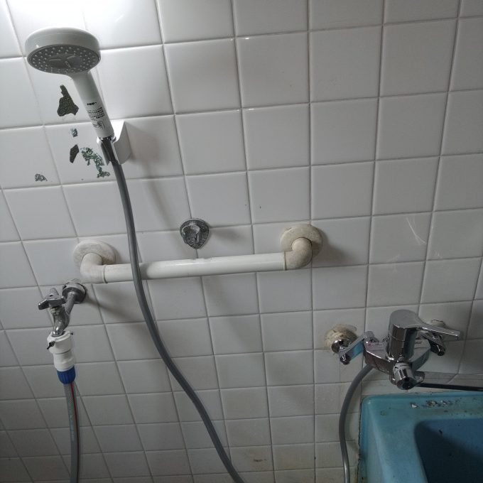まず始めに家全体を断水し、既設蛇口を取り外してお客様に選んで頂いたTOTOのTBV03301J1の混合水栓を取り付けました。