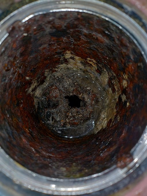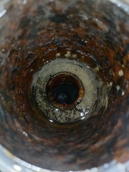 取り除いた防臭ワン内も薬品を使用して詰まり除去しました。
