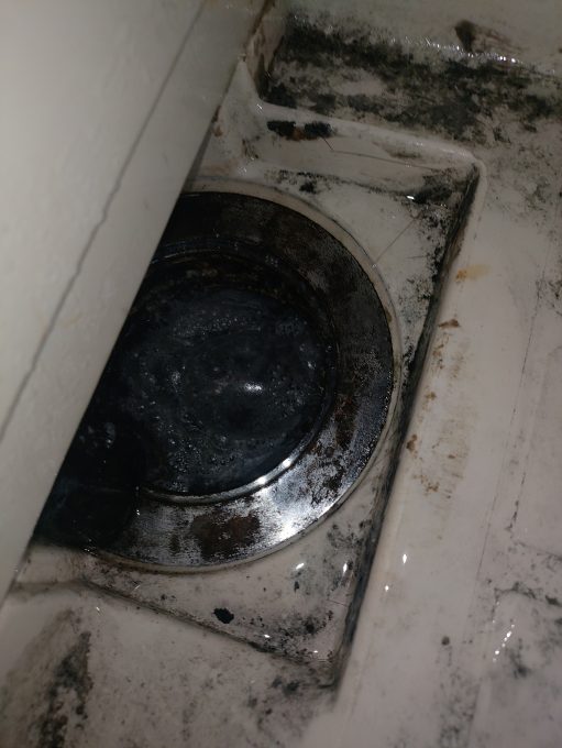アパートのユニット浴室の排水溝が詰まり、浴槽、洗面と繋がる排水の為、水を使うたびに逆流し溢れ流れない状況でした。