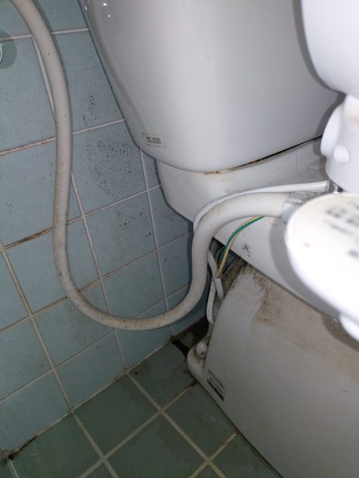 以前タンク内部部品交換をしましたが、今回はタイル床へタンクの外側から水漏れしてきたとのことでした。