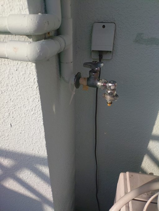 晴れているのに雨漏りしていることから発見したとのことで、お客様にてここにつながるバルブを閉めて待たれていました。