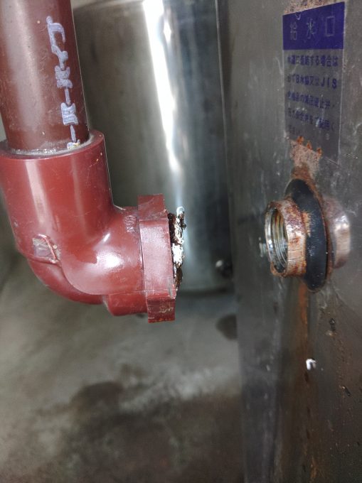 給湯器のお湯のパイプが経年劣化により破損しており、水漏れする状況でした。