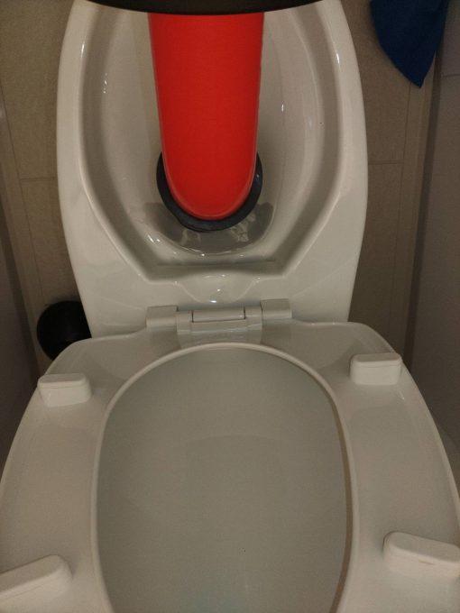 トイレを使用すると水が上がり便器から溢れそうになっていました。