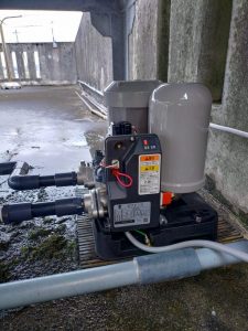 配管やゲートバルブも古い状態でしたが、まずは加圧ポンプのみ交換をして様子をみたいとのご意向で作業を進めました。