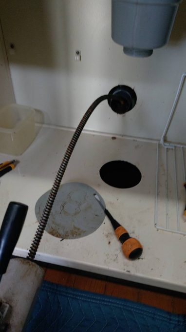 台所の蛇口から水を流すとシンク下の排水管から水が逆流して、なかなか水が引かず汚水が溜まっている状態でした。
