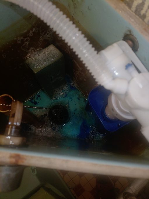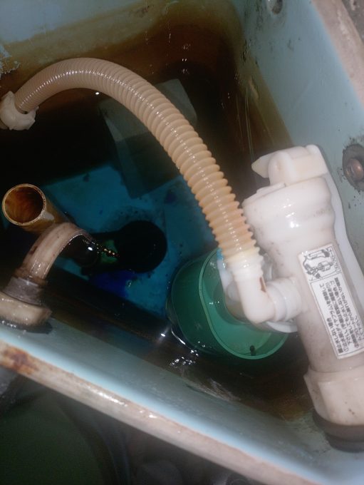 タンク内部のフロートバルブの劣化により隙間から常に水漏れしていますのと、ボールタップも劣化しており水がちょろちょろ止まらない状況でした。