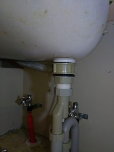 交換後は水漏れもなく、化粧台の底板下への水漏れもないことをお客様にもご確認いただき作業完了しました。