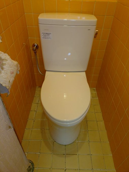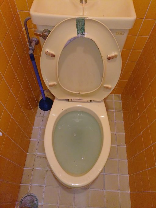 タンクから室内に入るバルブを止めて既存のタンク、便器を取り外します。