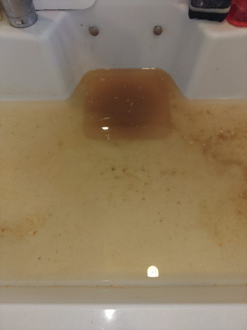 クリスマス後からシンクの流れが悪くなってて、お湯を流して見たところ完全に流れなくなってしまったとのことでした。