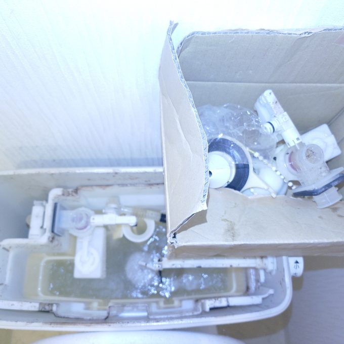 今回は通常販売されているボールタップと排水弁部の交換をして水漏れを直すことができました。