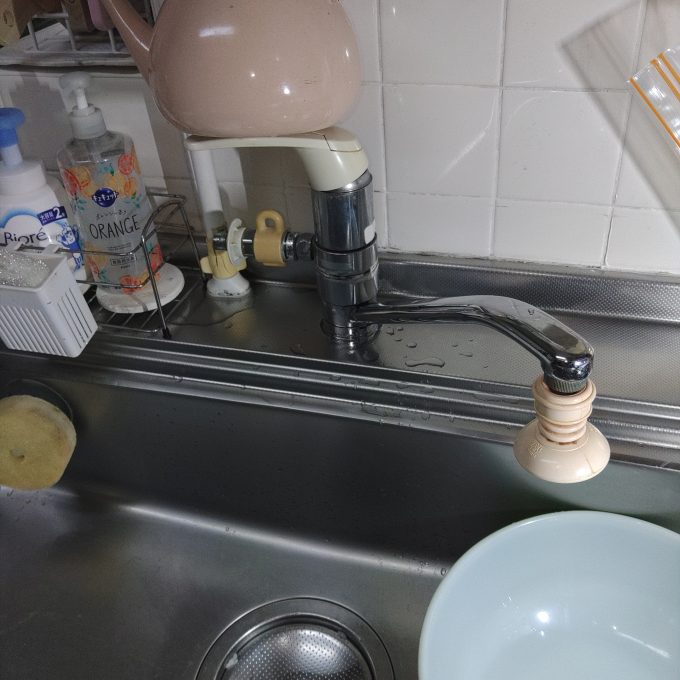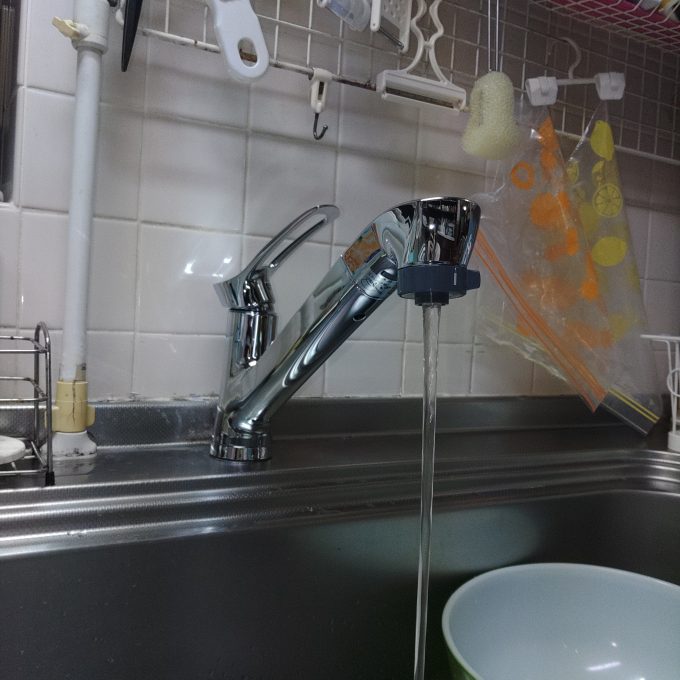 まず家全体の断水をし、既存の蛇口を取り外して新しくお客様自身で準備していた蛇口を取り付け交換しました。
