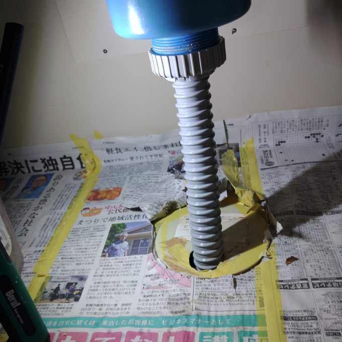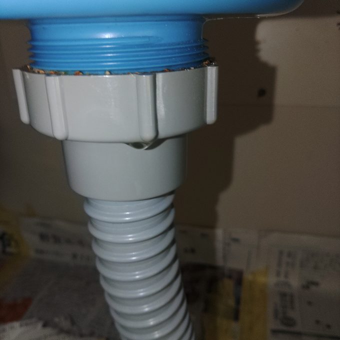 新しい排水ホースを設置し、防臭パッキンにコーキングをして水漏れを直し、流れを良くしました。