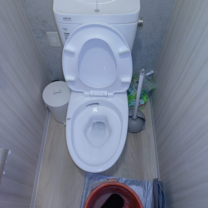 今回は応急処置をすることになり、作業は便器に圧力をかけることで詰まりを押し込むかたちになりました。ローポンプを使って便器から圧力をかけると便器の流れが回復して通常通り使用できるようになりました。