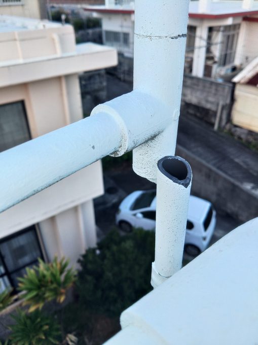 2階建て屋上タンク付近の給水管が経年劣化で破損して水漏れしていました。