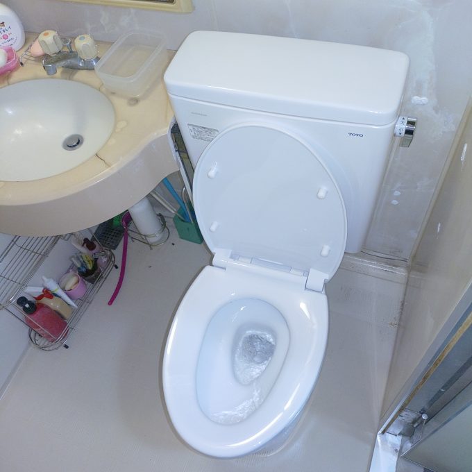 まずはトイレを解体して行きますが、パネルが干渉しないギリギリのラインで切除しておきました。普段見えないところの汚れなどもきれいに掃除をしたうえで、新しいトイレを取り付けさせていただきました。